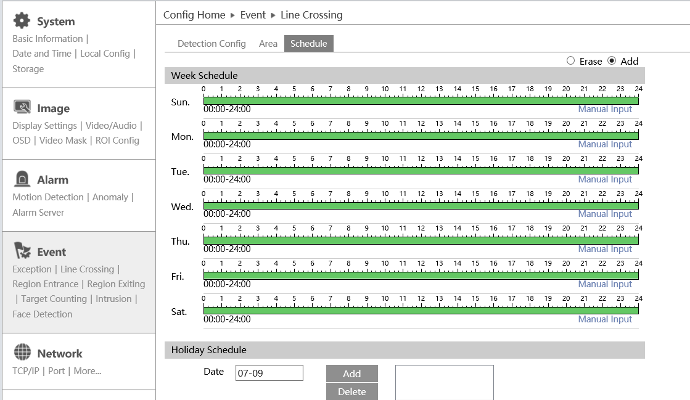 แน่นอนเรามีตารางเวลา วันจันทร์ - วันอาทิตย์ กำหนดเวลาในการตรวจจับและบันทึกได้เลยนอกจากจะไม่รำคาญการแจ้งเตือนแล้วจะช่วยประหยัดเรื่องการบันทึกในฟังค์ชั่นAI