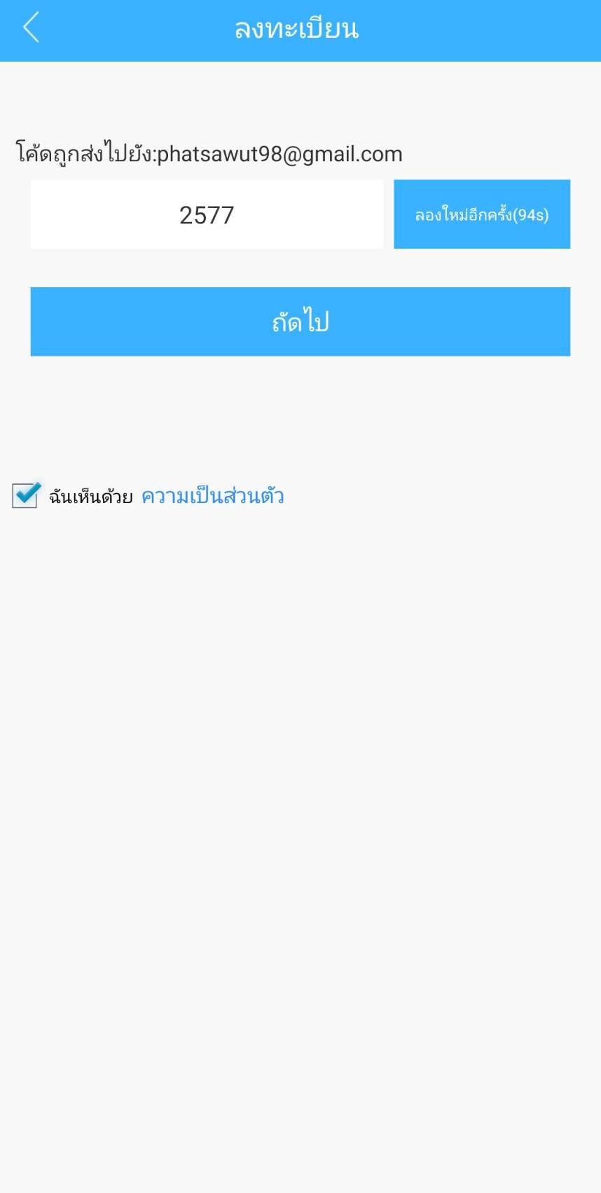 กรอก Mail แนะนำเป็น Gmail > รับข้อมูล