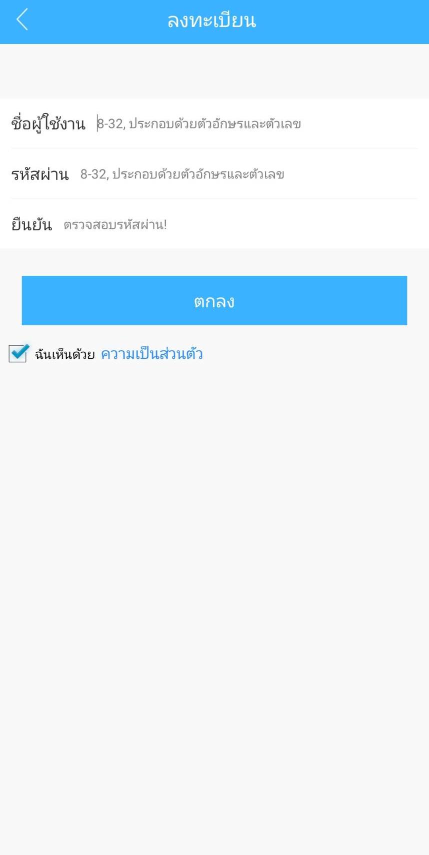 ตั้งชื่อผู้ใช้ > รหัสผ่าน-ยืนยันรหัสผ่าน > ตกลง