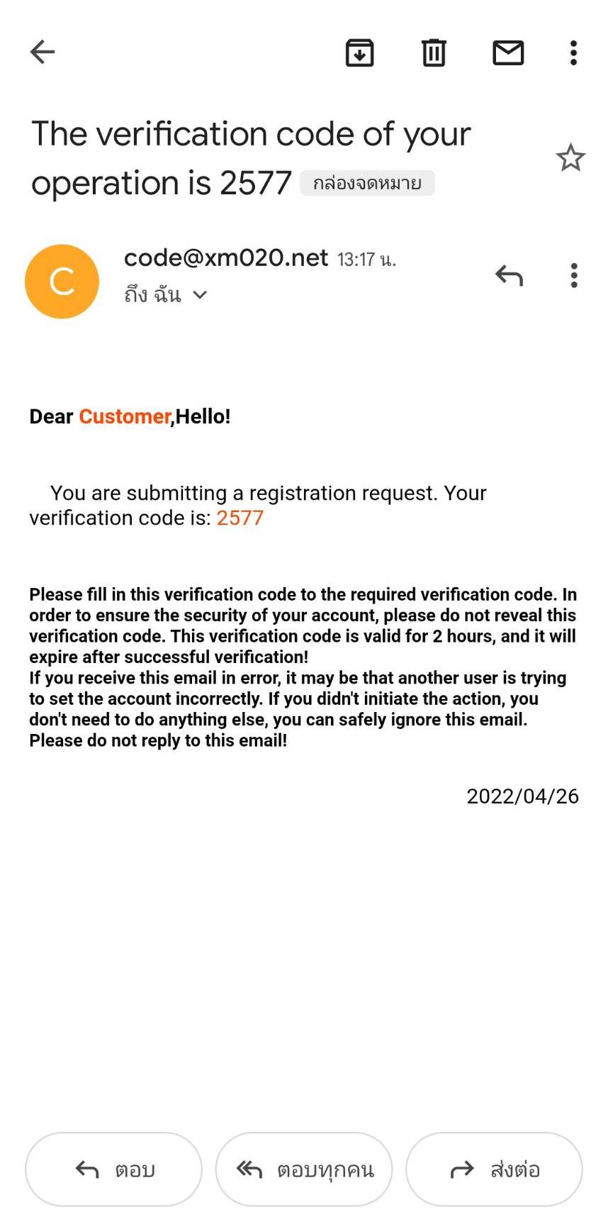 เข้า App Gmail > เช็ค Mail Code ตามตัวอย่าง 2577