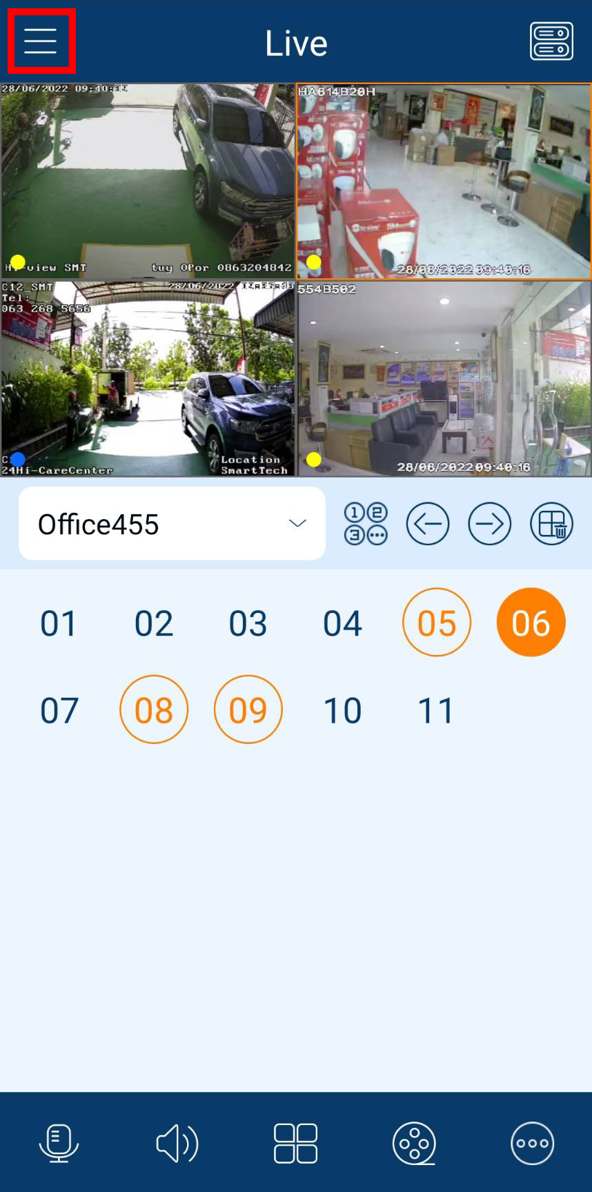Live หน้าดูภาพแสดงภาพกล้อง 12 กล้องที่ทำการเพิ่มผ่าน App