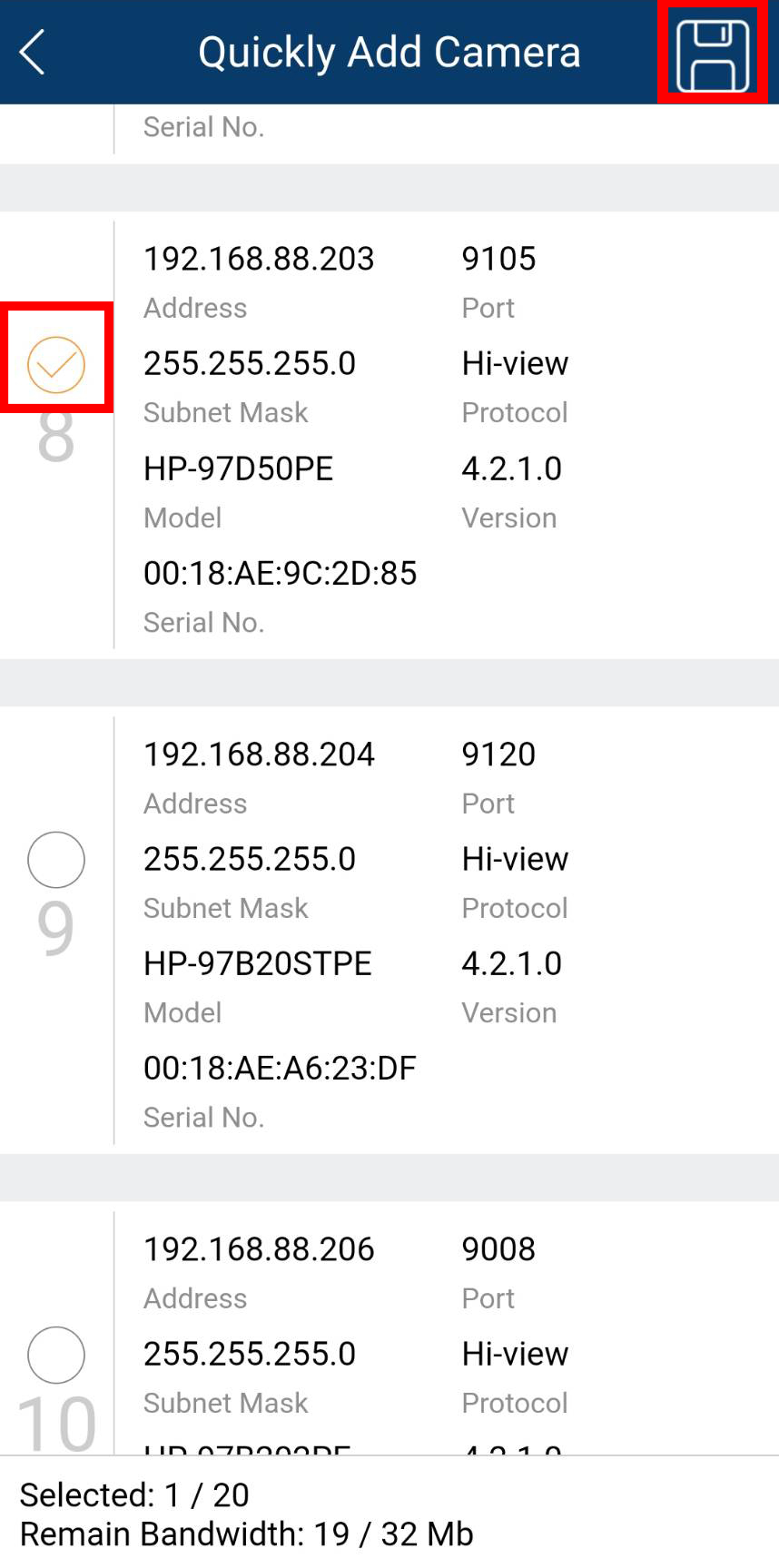 Quickly Add Camera เลือกกล้อง IP ที่กล้องการเเอด - Save
