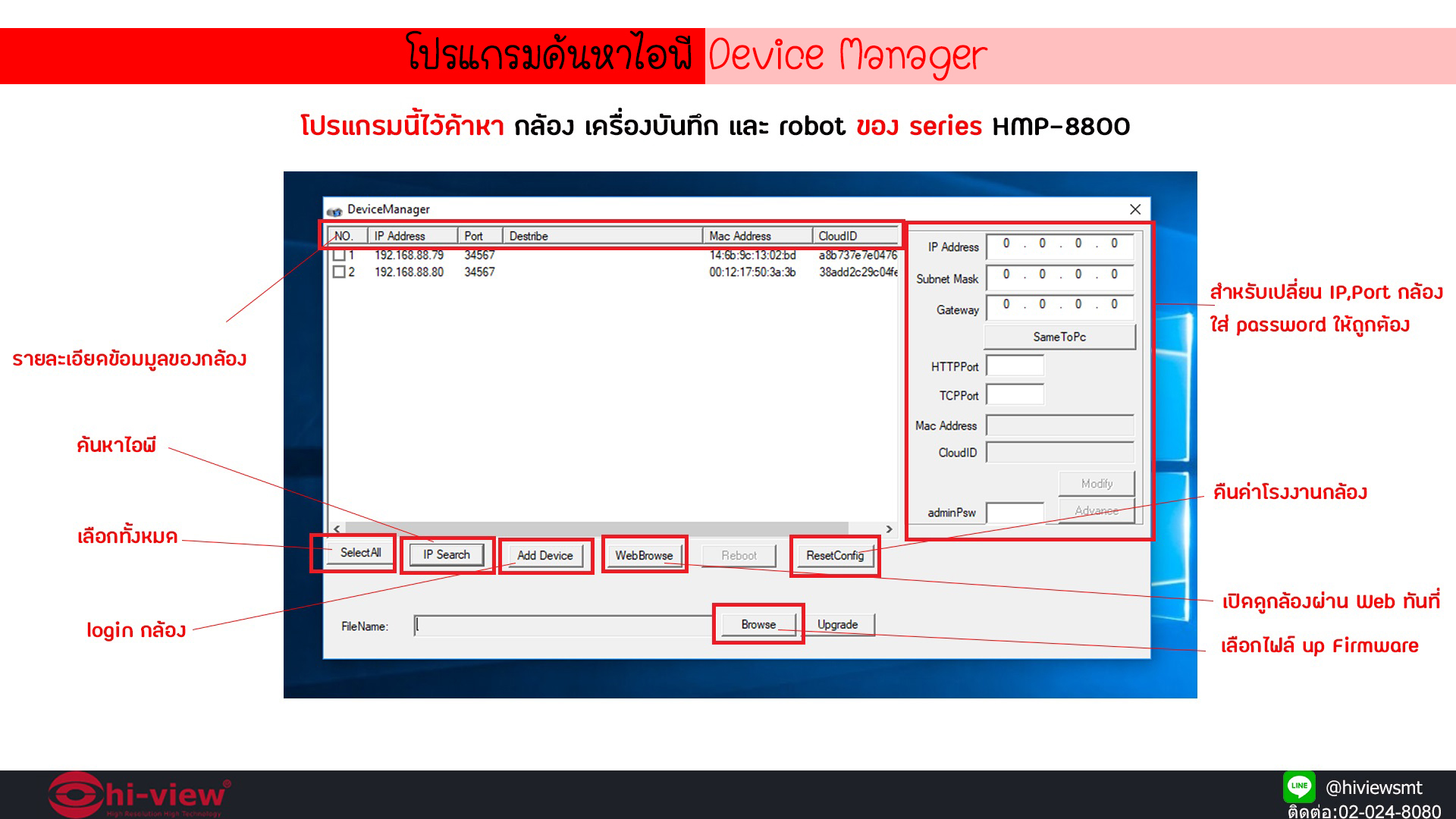 Hiview โปรแกรม Device Manager Fix ip กล้องวงจรปิดไฮวิว 5000,8000Series