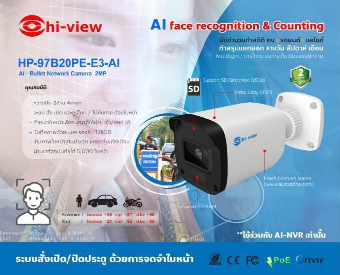 เป็นมากกว่ากล้องวงจรปิดที่มาพร้อมกับ ระบบ AI สามารถนับรถยนต์ มอเตอร์ไซด์และคน เข้าออกได้อย่างแม่นยำมากๆ สามารถเชื่อมต่อกับเครื่องบันทึก NVR HP-9700AI เพื่อใช้งานฟังค์ชั่นได้เต็มประสิทธิภาพ ยิ่งขึ้น