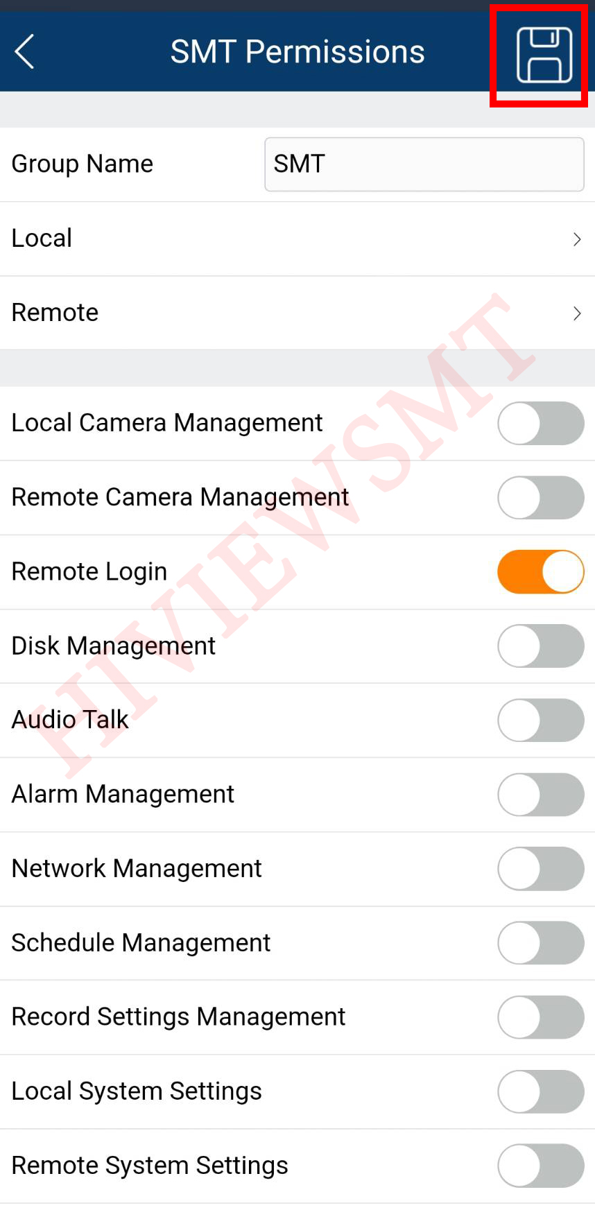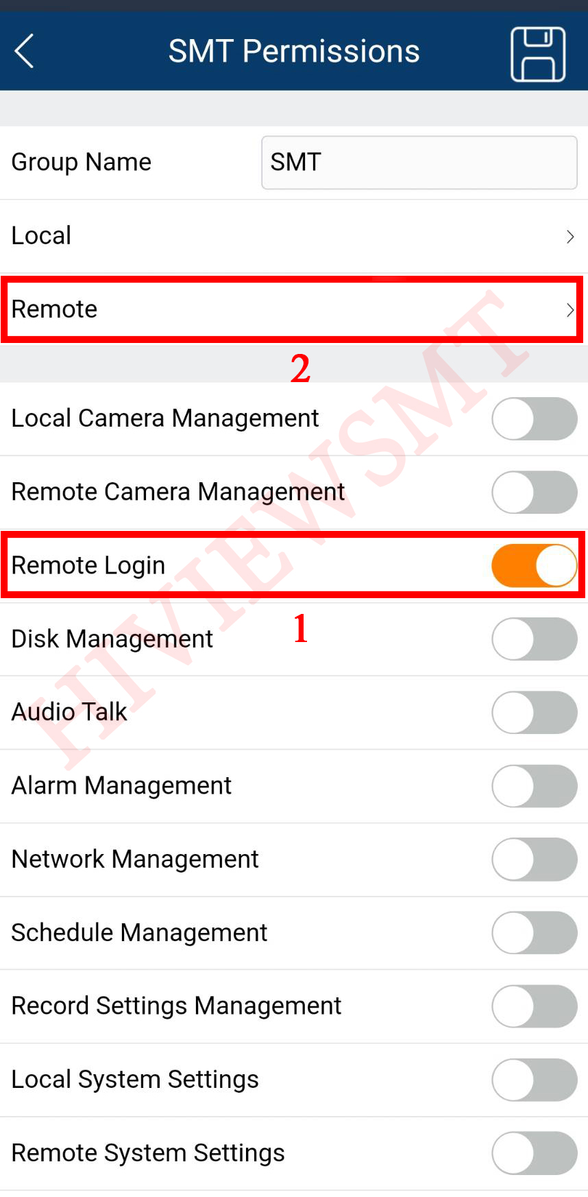 7.ตั้งชื่อ Group > เปิดใช้งาน Remote Login > เข้า Remote เข้าไปจัดการกล้อง
