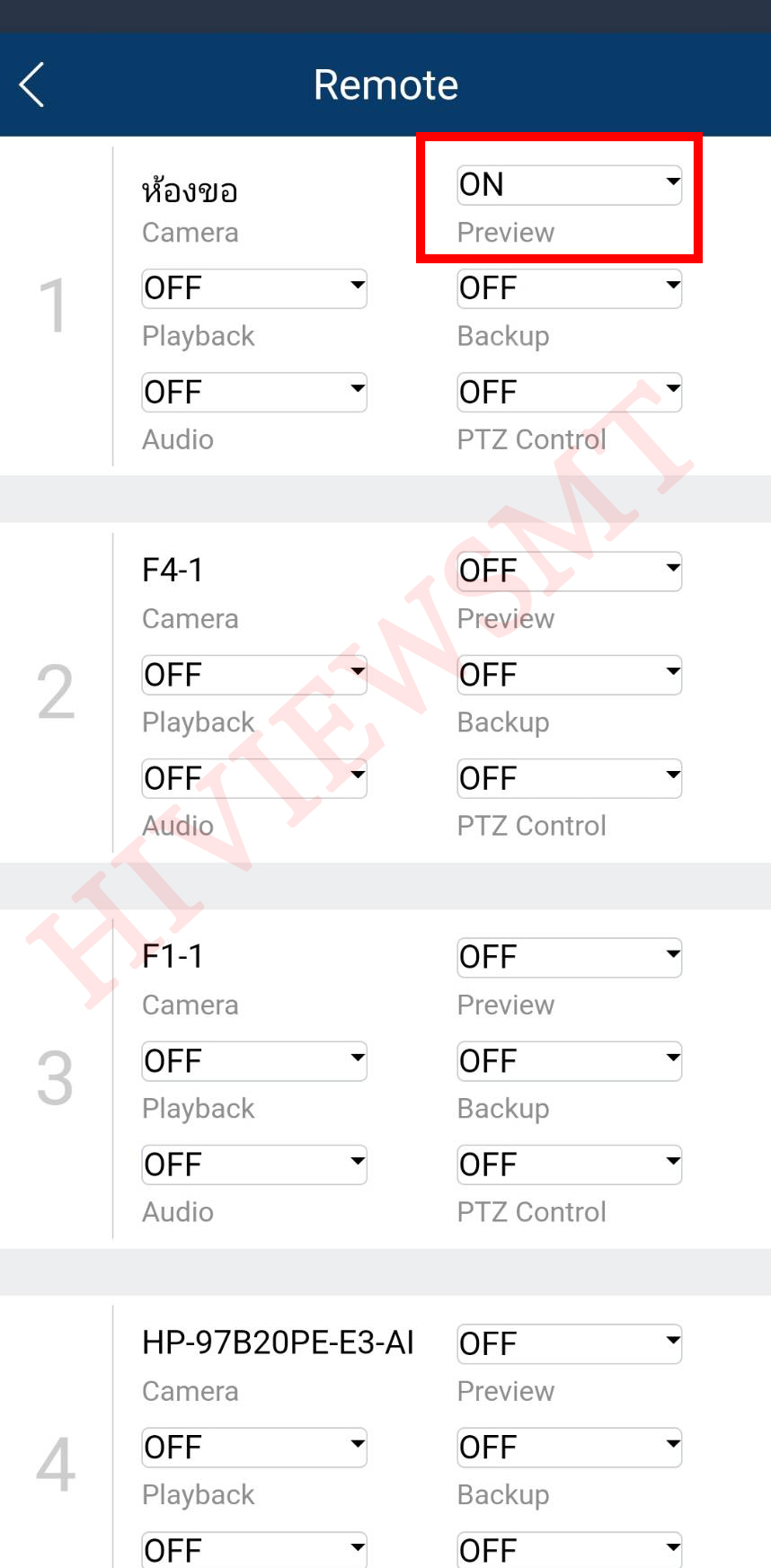 8.Remote > ON Preview กล้องที่ 1 > ย้อนกลับ