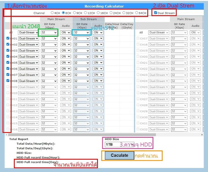 ยิ่งตั้งค่า Bit Rate ใส่ตัวเลขเยอะ ภาพสดและภาพที่บันทึกยิ่งคม แต่กินพื้นที่ HDD มากขึ้น