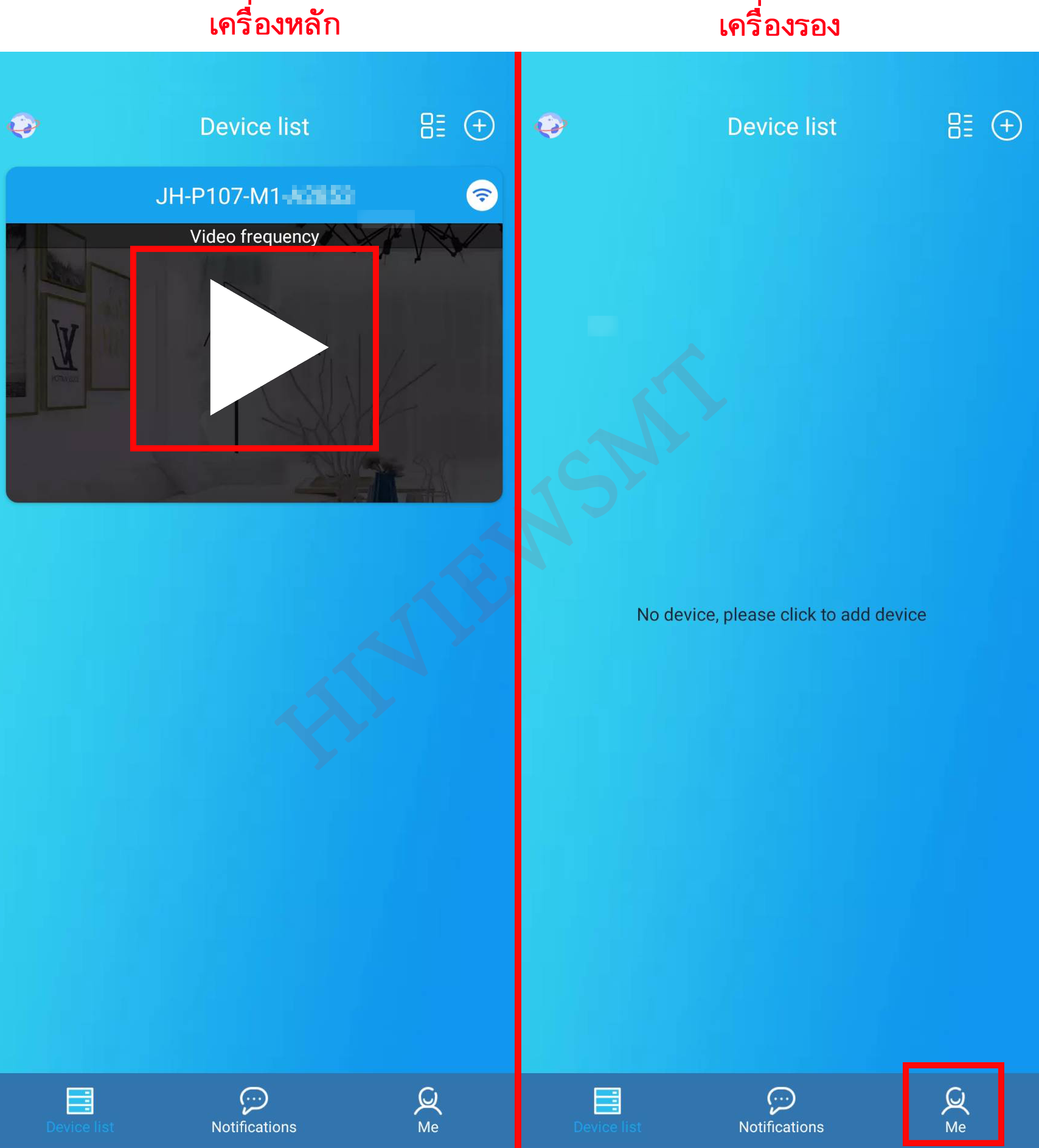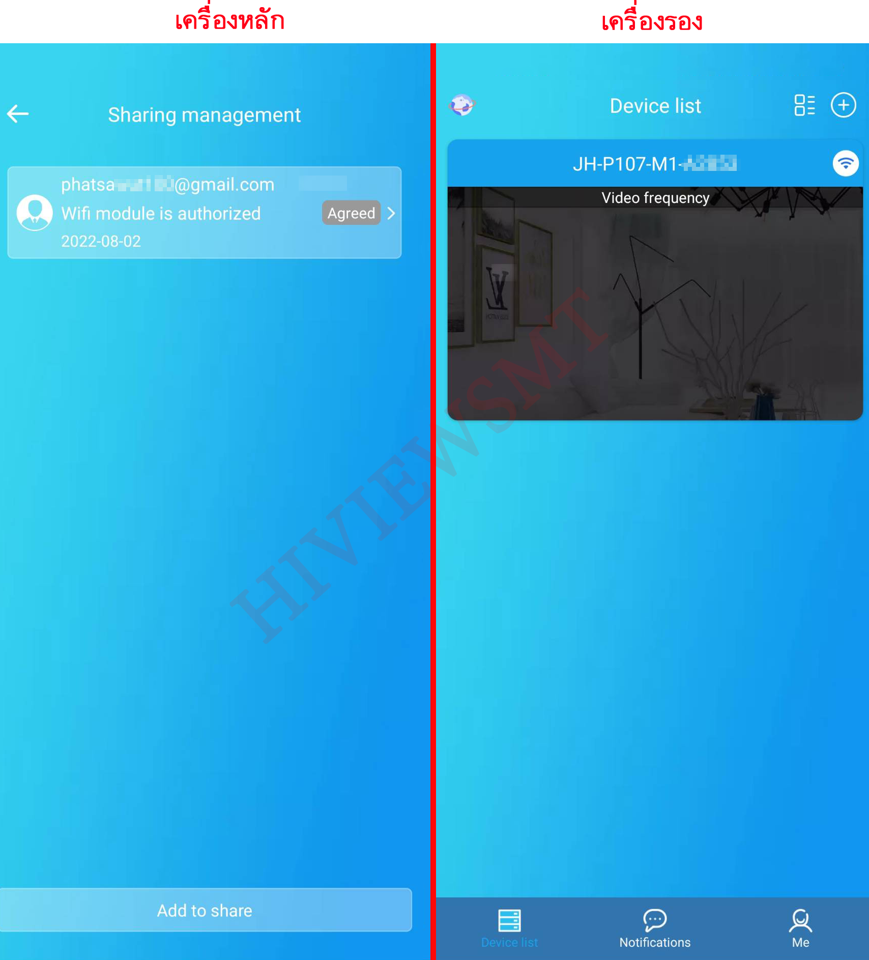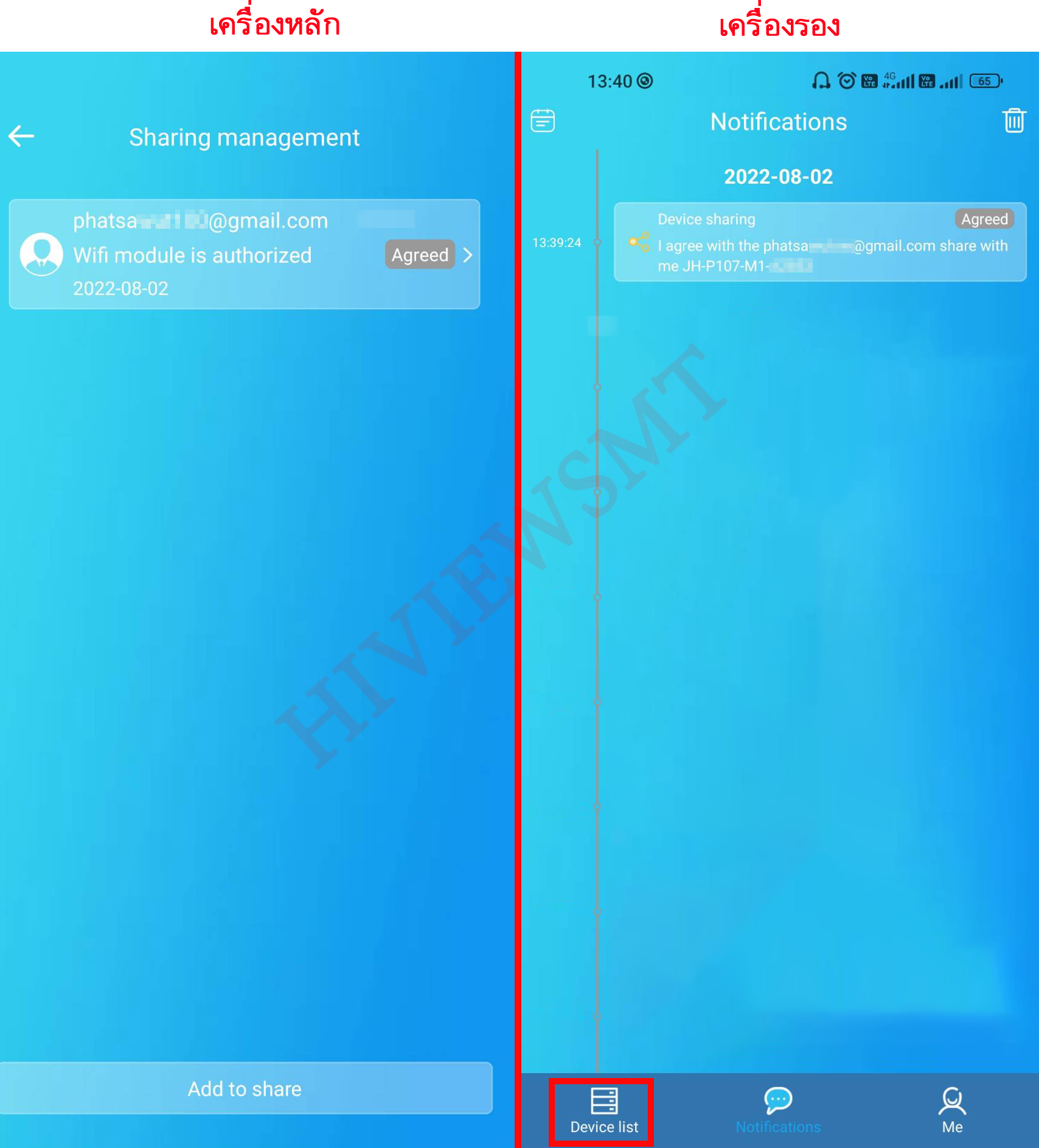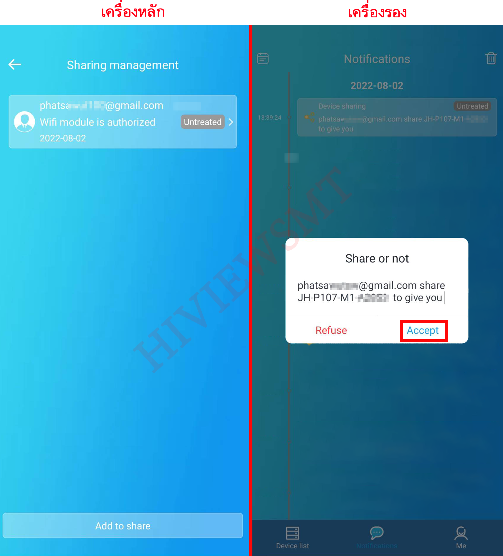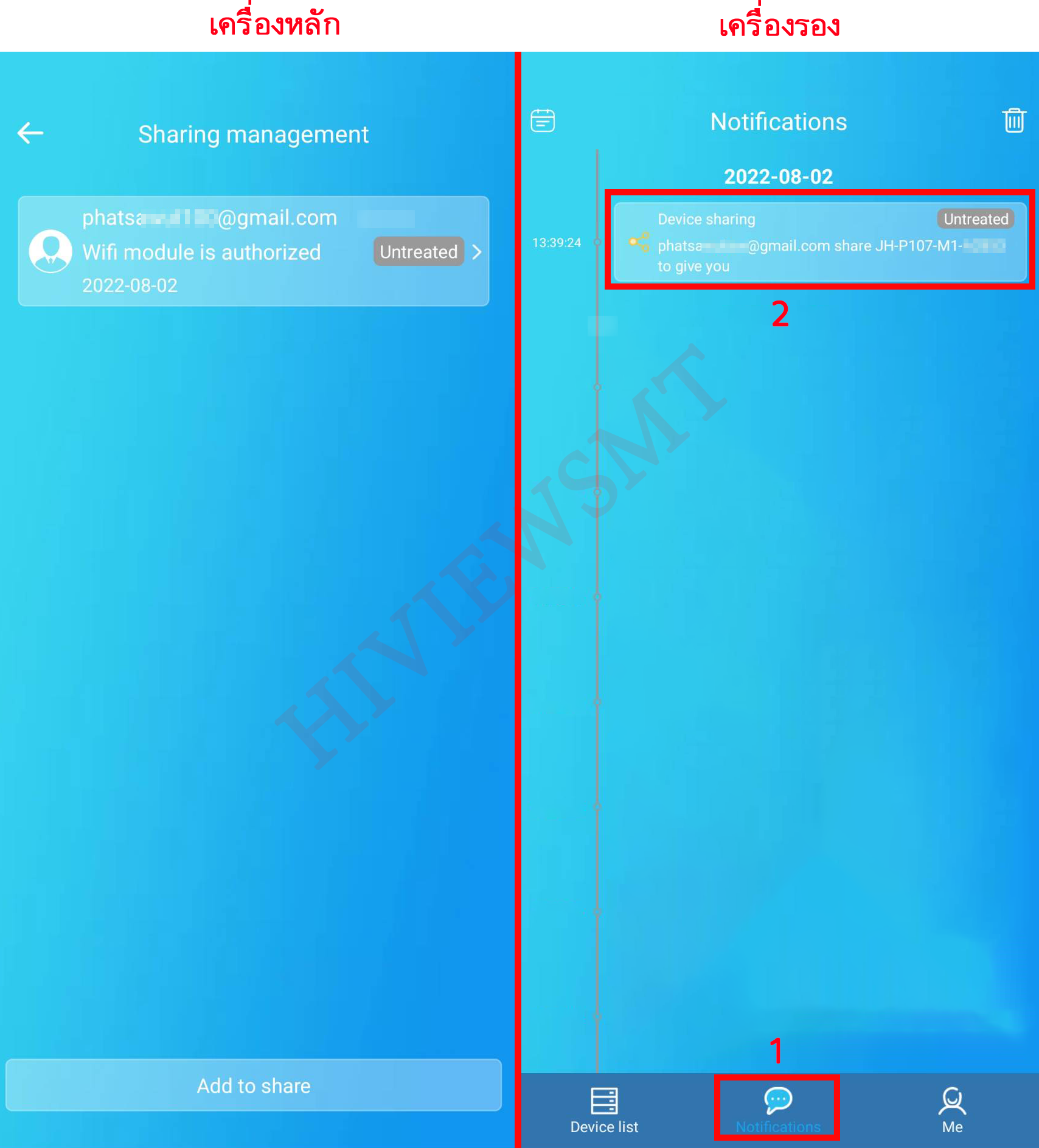เครื่องรอง : เข้าหน้า Notifications > เข้าหน้า Device sharing