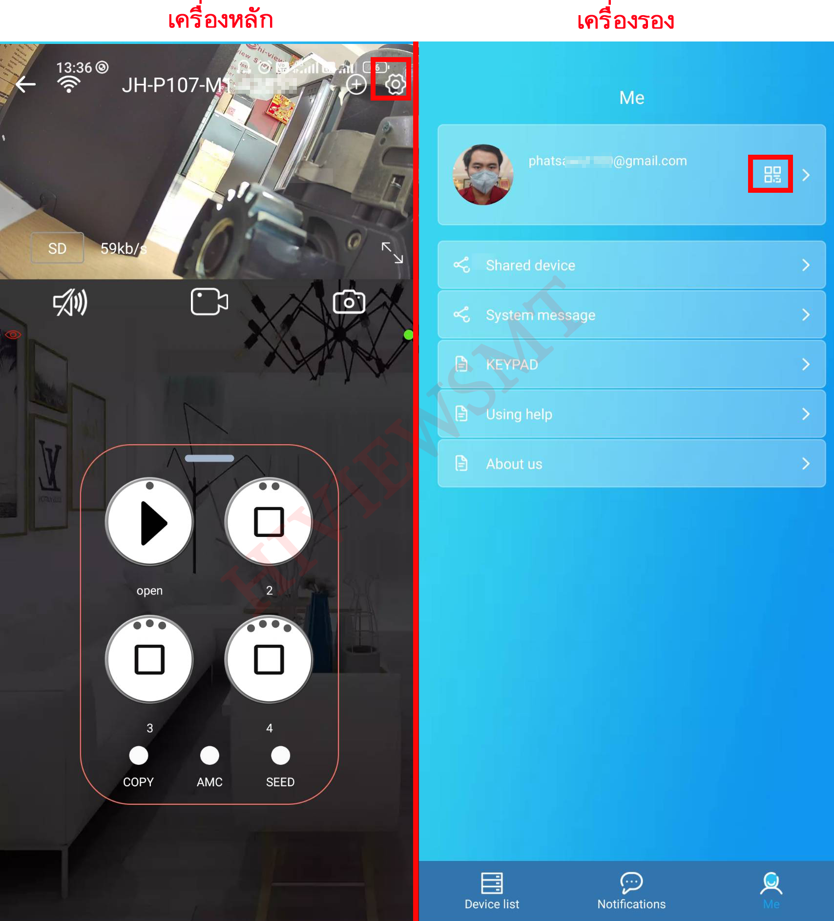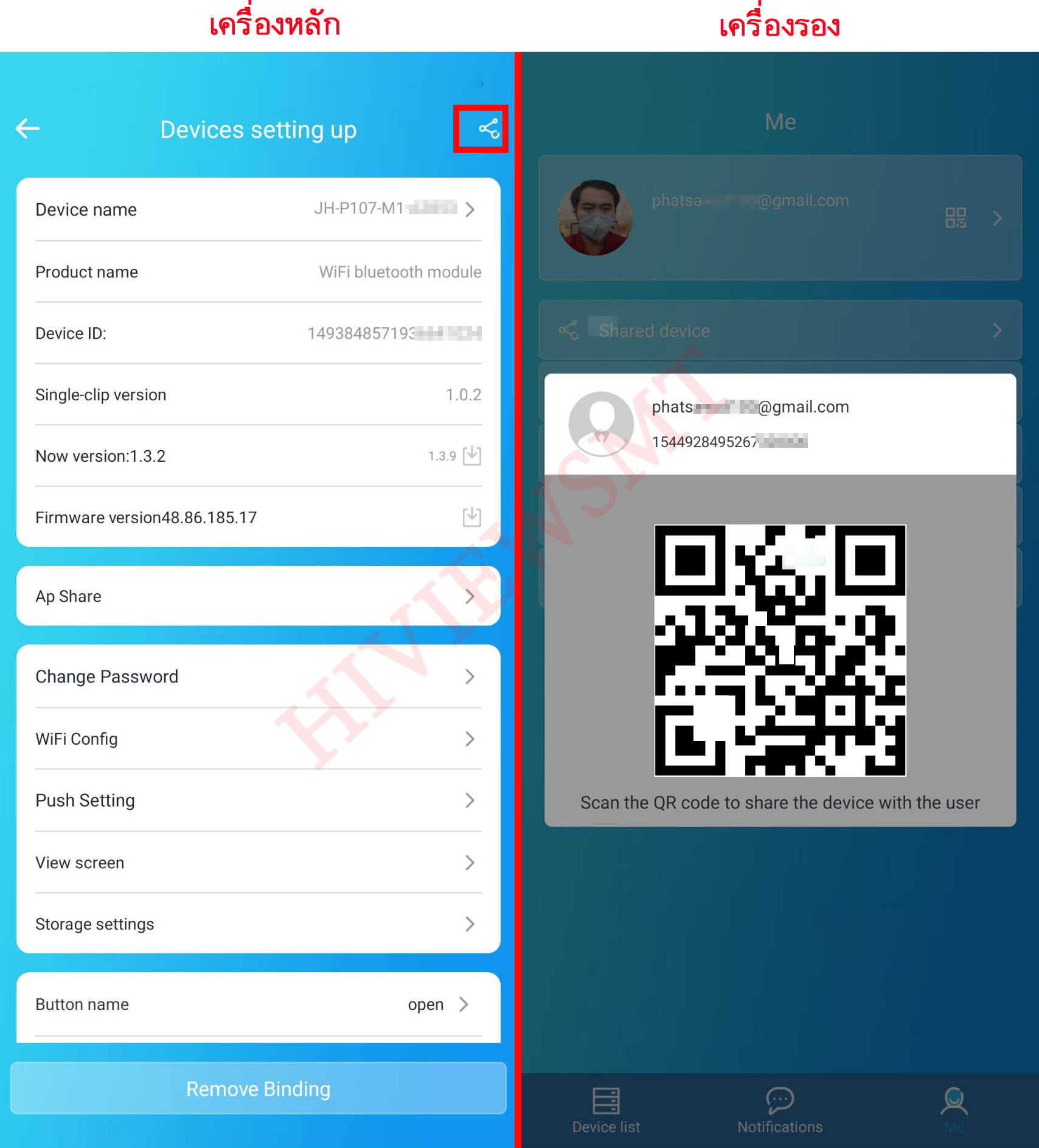 เครื่องหลัก : Devices setting up > บนขวาปุ่มเเชร์