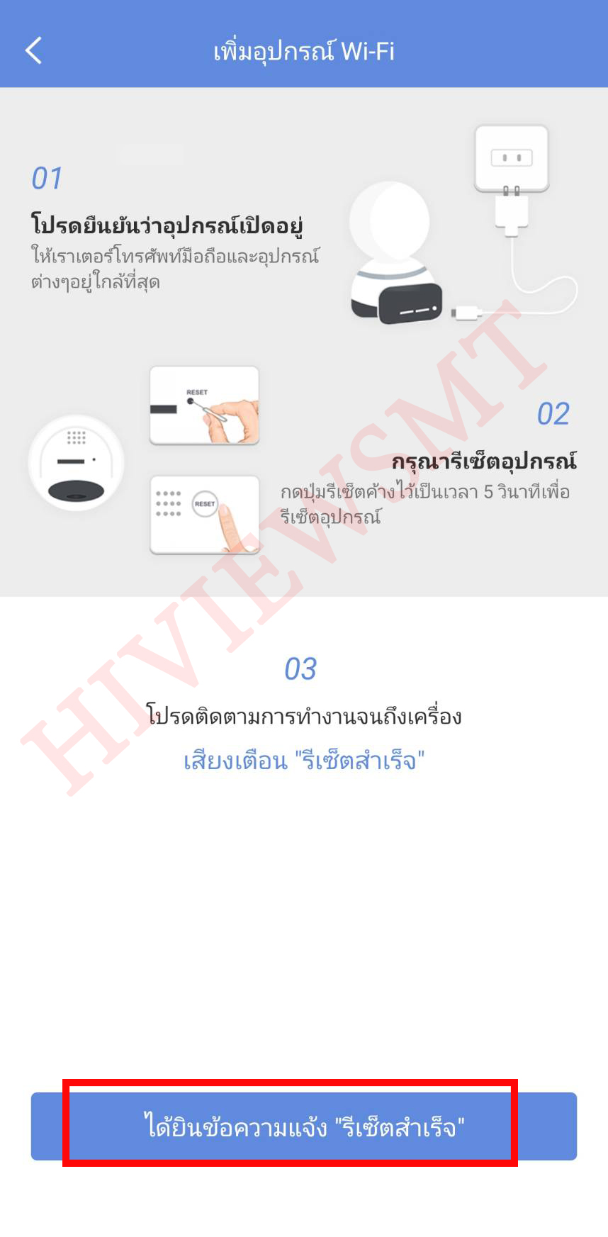 6.รีเซ็ตกล้องเมื่อได้ยินเสียงรีเซ็ต ให้เลือก ได้ยินเสียงข้อความเเจ้ง "รีเซ็ตสำเร็จ"