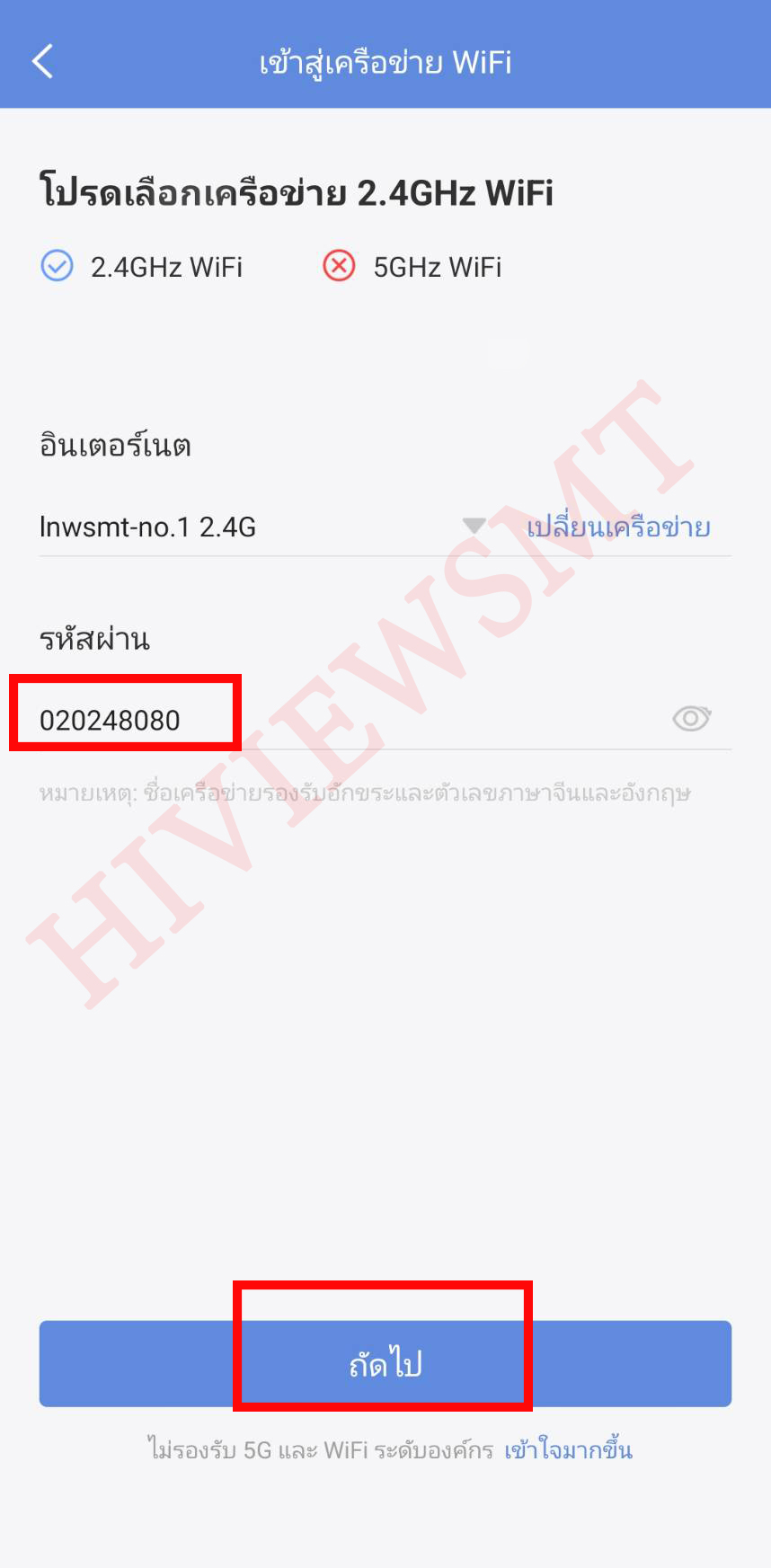 9.กรอกรหัสผ่าน Wifi 2.4 GHz ให้ถูกต้อง > ถัดไป