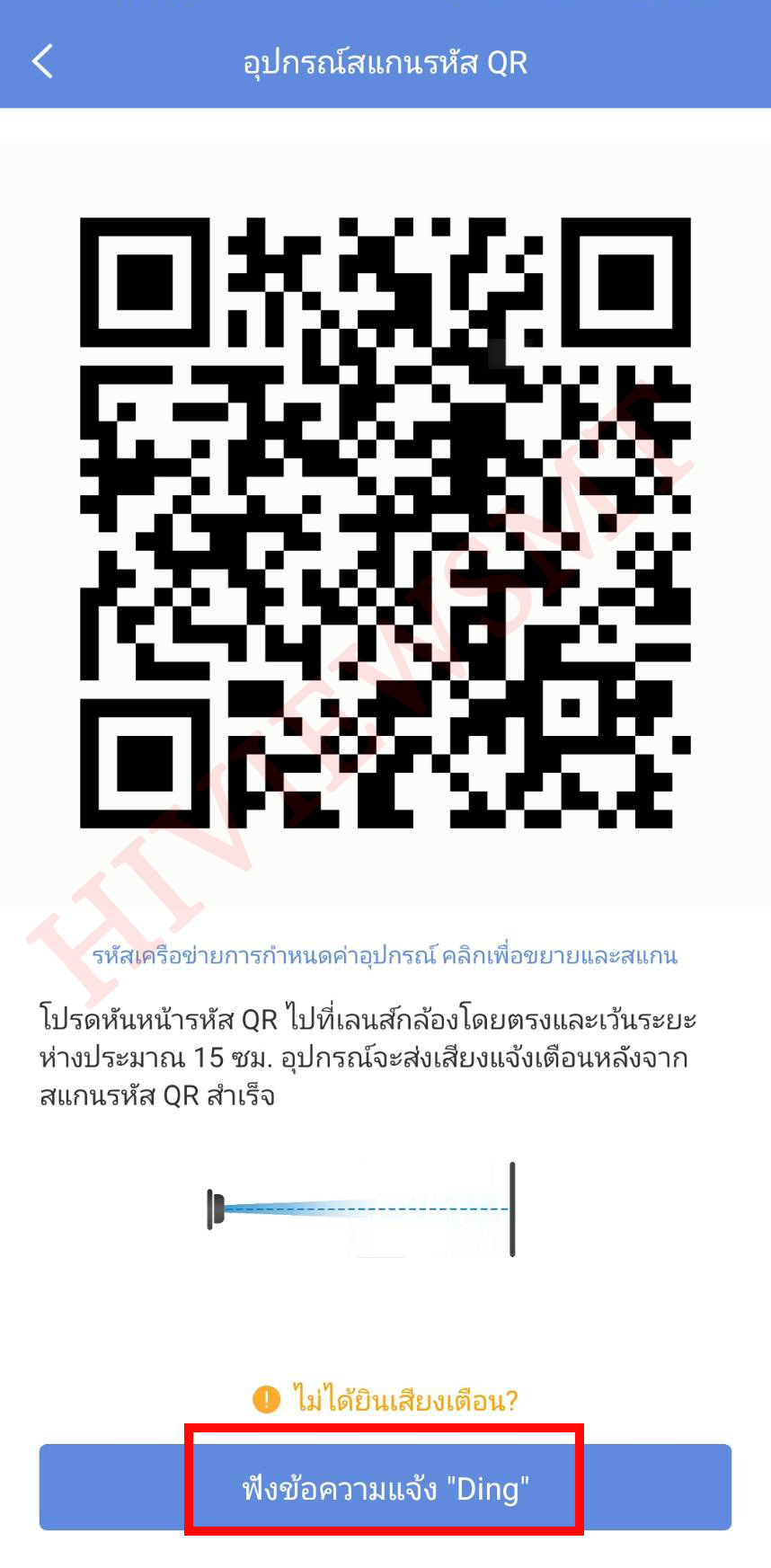 10.นำ QR Code จากมือถือ ไปส่งที่หน้ากล้อง ให้มีเสียงดังติ้ง แล้วกด ฟังข้อความเเจ้ง "Ding"