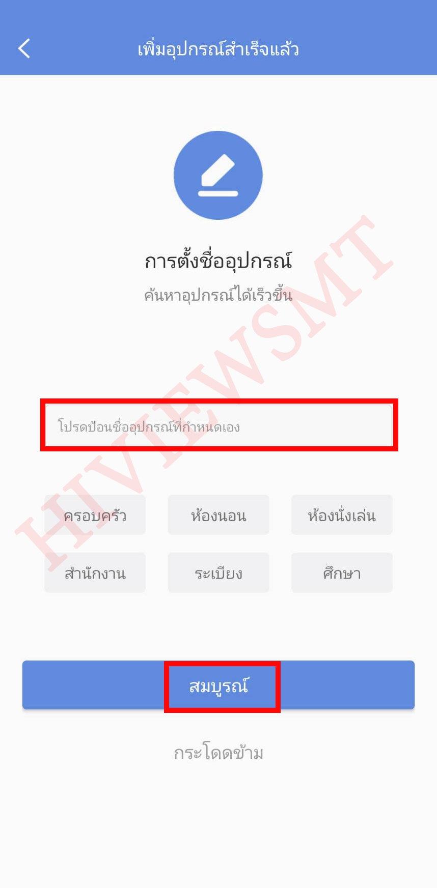 12.เชื่อมอุปกรณ์สำเร็จ > ตั้งชื่ออุปกรณ์,กล้อง > สมบูรณ์