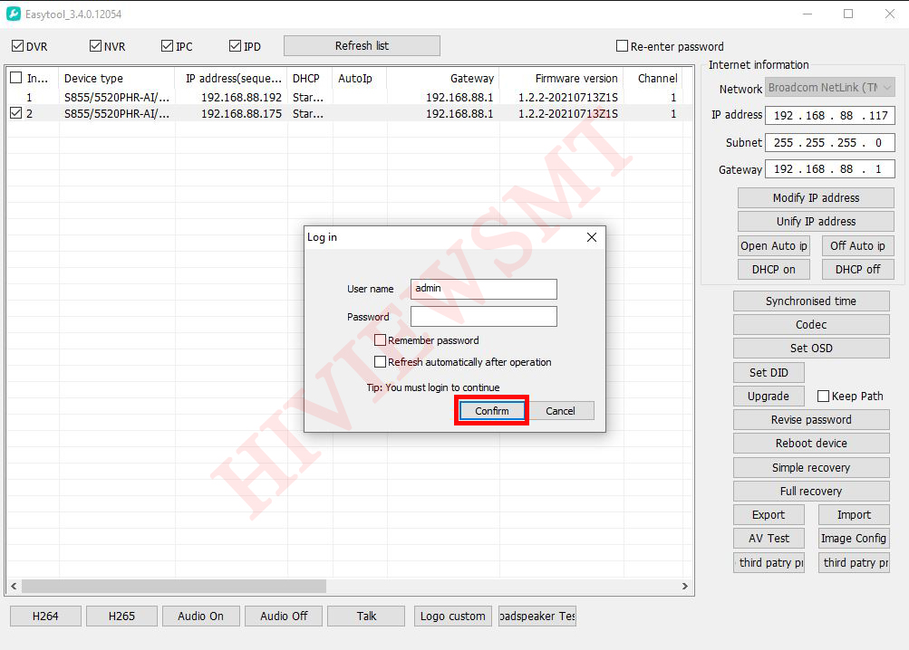 2.Log in > กรอกรหัสผ่านกล้องให้ถูกต้อง *ค่าเริ่มต้นไม่มีรหัสผ่าน > Confirm