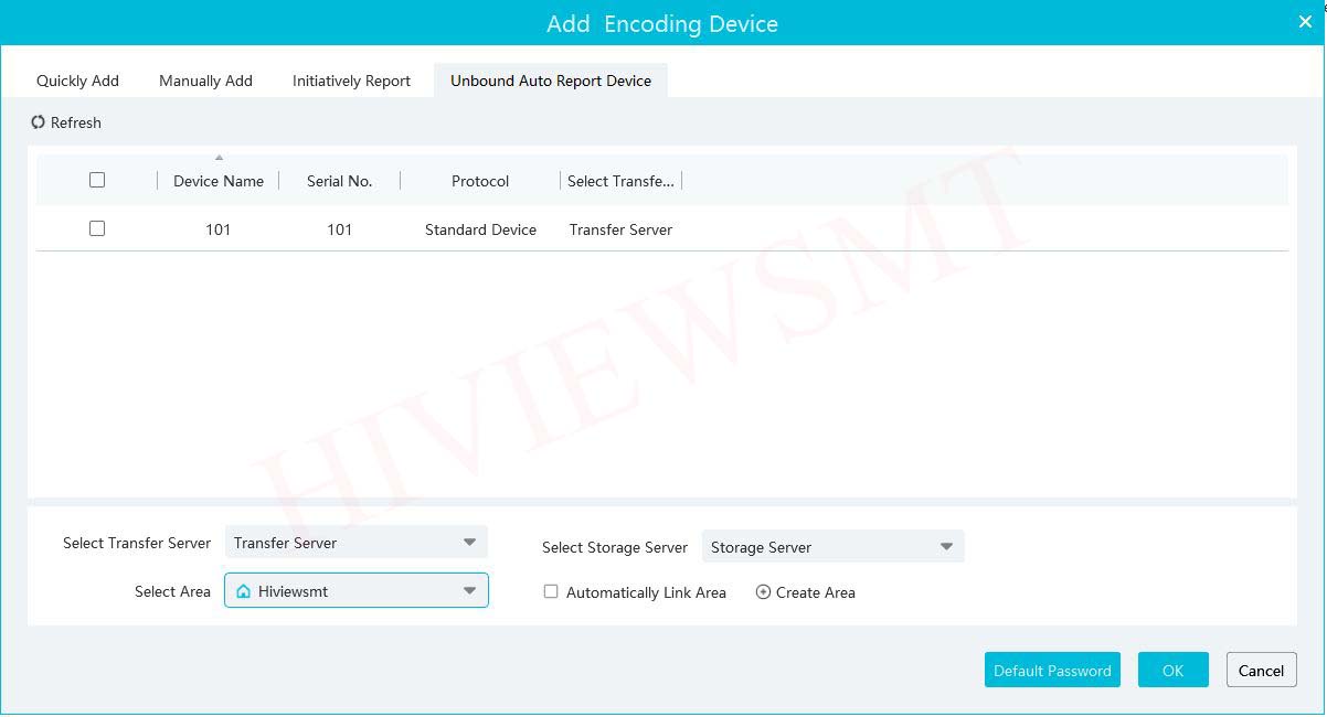 สำหรับอุปกรณ์รายงานอัตโนมัติ คุณสามารถไปที่อินเทอร์เฟซ "Unbound Auto Report Device" เพื่อเพิ่มได้อย่างรวดเร็ว หมายเหตุ : โปรดกรอกข้อมูลรายงานอัตโนมัติใน NVR/IPC ล่วงหน้า จากนั้นจึงค้นหาข้อมูลอุปกรณ์ได้ในอินเทอร์เฟซ “Unbound Auto Report Device”