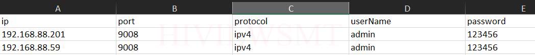 1. สร้างไฟล์ Excel จากนั้นแก้ไขข้อมูลอุปกรณ์ดังนี้ รุณาคัดลอกข้อความของบรรทัดแรก