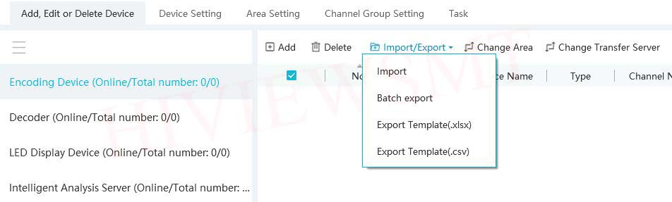 คุณสามารถนำเข้าอุปกรณ์เข้ารหัส (NVR/IPC หลายเครื่องในเครือข่ายท้องถิ่นต่างๆ ได้พร้อมกัน ขั้นตอนการตั้งค่ามีดังนี้: