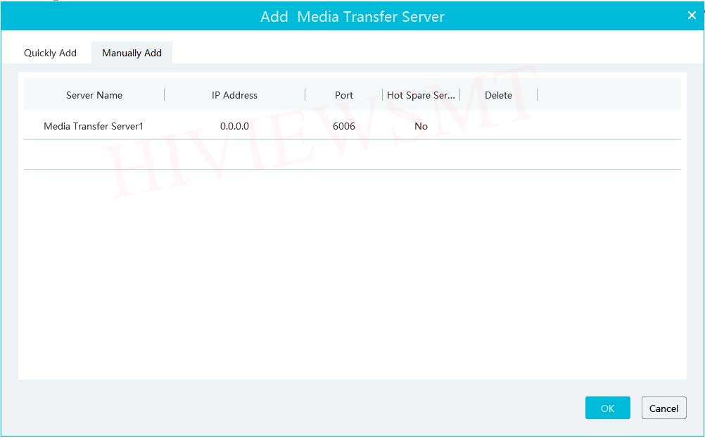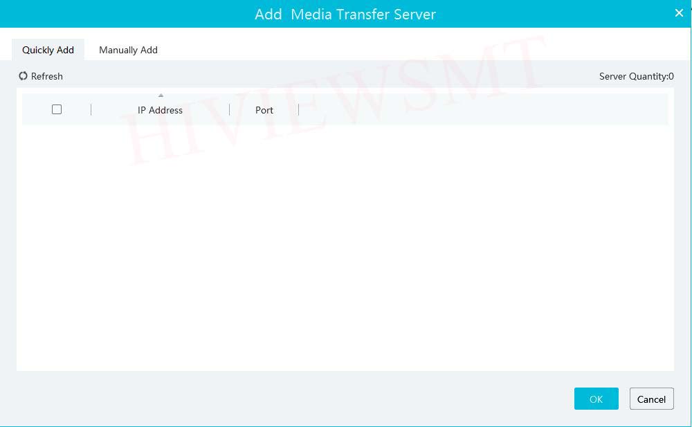 เลือกแท็บ "Manually Add" เพื่อไปที่ส่วนต่อประสานการเพิ่มเซิร์ฟเวอร์ถ่ายโอนสื่อ ป้อน ชื่อ เซิร์ฟเวอร์ ที่อยู่ IP และพอร์ต แล้วคลิก [OK] เพื่อ