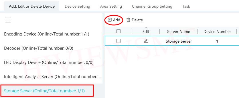 1. คลิก Home→Add, Edit or Delete Device→Storage Server