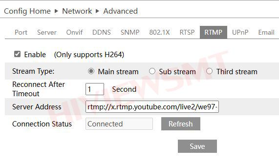 3.ตั้งค่า Config Home > Network > Advanced > RTMP