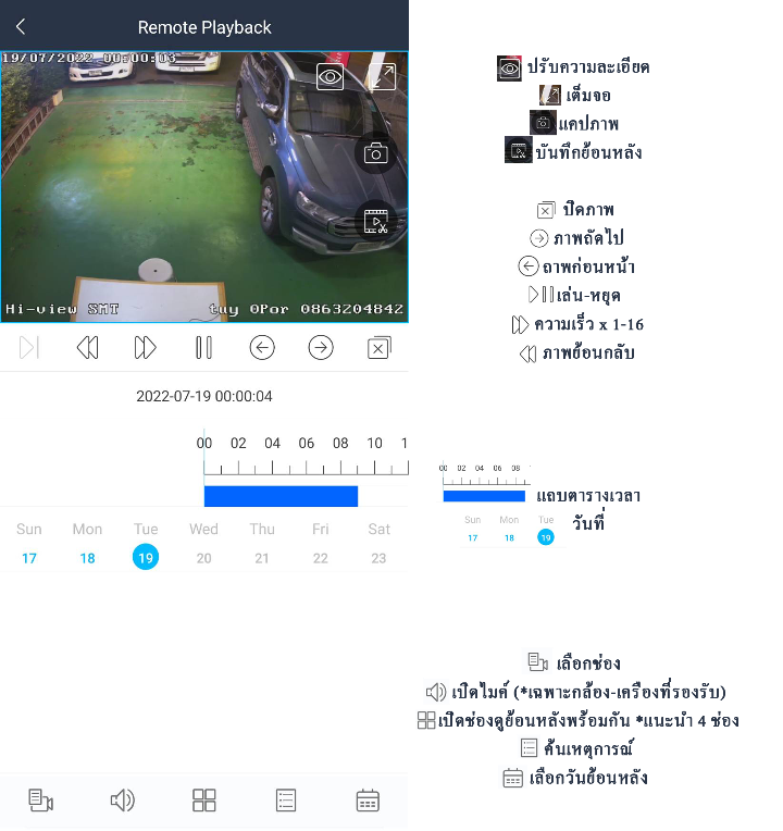 2. Remote Playback สามารถเล่นย้อนหลังโดยการ เลือกช่อง และ วันที่ ที่ต้องการเล่นย้อนหลัง เลื่อนเเถบตารางเวลา เพื่อดูเวลาที่ต้องการ