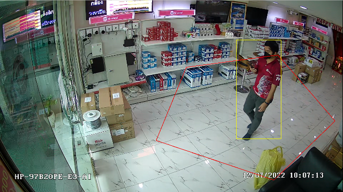 ตัวอย่างการทำงานและแจ้งเตือนเมื่อมีคนเข้ามาในกรอบที่วาดไว้