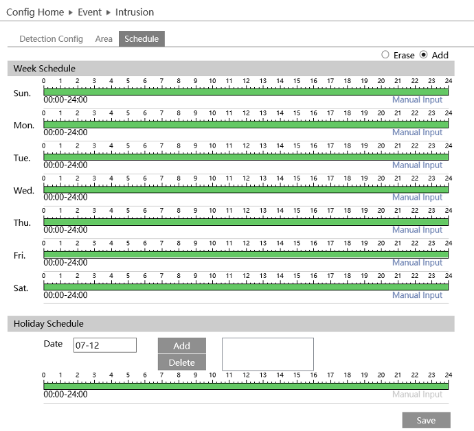 แน่นอนเรามีตารางเวลา วันจันทร์ - วันอาทิตย์ กำหนดเวลาในการตรวจจับและบันทึกได้เลยนอกจากจะไม่รำคาญการแจ้งเตือนแล้วจะช่วยประหยัดเรื่องการบันทึกในฟังค์ชั่นAI