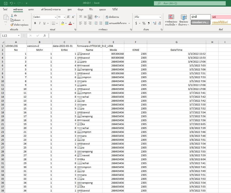 ตัวอย่างการดึงข้อมูลผ่าน USB เพื่อทำเงินเดือนดูเวลาเข้า-ออกพนักงาน