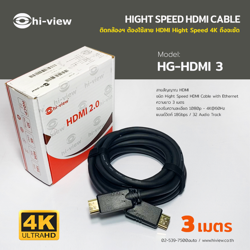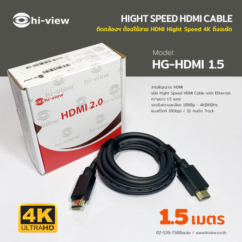 HDMI 2.0 เริ่มต้นที่ 1.5เมตร รองรับความละเอียดตั้งแต่ 1080P - 4K@60Hz