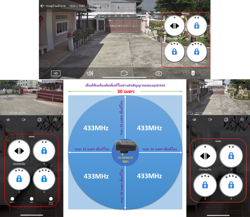 ใช้สำหรับ “Copy” สัญญาณของรีโมท เช่น สัญญาณรีโมทประตูมอเตอร์หรือสัญญาณรีโมทไม้กั้นทางหรืออื่นๆ และเอาอุปกรณ์ HV-REMOTE-WiFi เชื่อมต่อ WiFi ทำให้เราสามารถกดสั่งงานควบคุมอุปกรณ์ระยะไกลผ่าน4G/5G ผ่านแอปพลิเคชัน iDoor พร้อมทั้งสามารถดูภาพสดของกล้องผ่านแอปพลิเคชันได้เลย